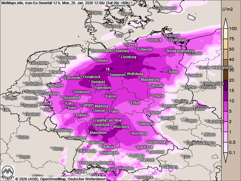 Auch Klimatologen schlagen Alarm. Dr. Karsten Brandt vom Wetterdienst Donnerwetter.de verweist auf aktuelle Berechnungen des ICON-Wettermodells. Dieses prognostiziert lokal erhebliche Schneemengen. „Das Modell zeigt einen großen Schneemann“, sagt Brandt. In Hannover könnten demnach bis zu 16 Zentimeter Neuschnee fallen – innerhalb kurzer Zeit.